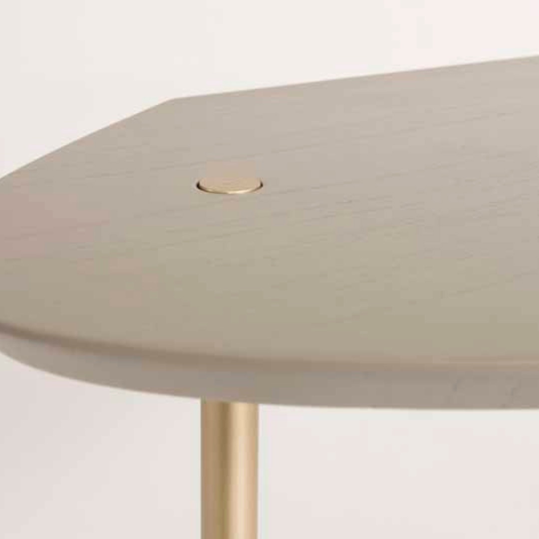 Estrutura aço carbono pintado. Tampo orgânico MDF laminado ou laqueado. Detalhes em metal aplicados no tampo.