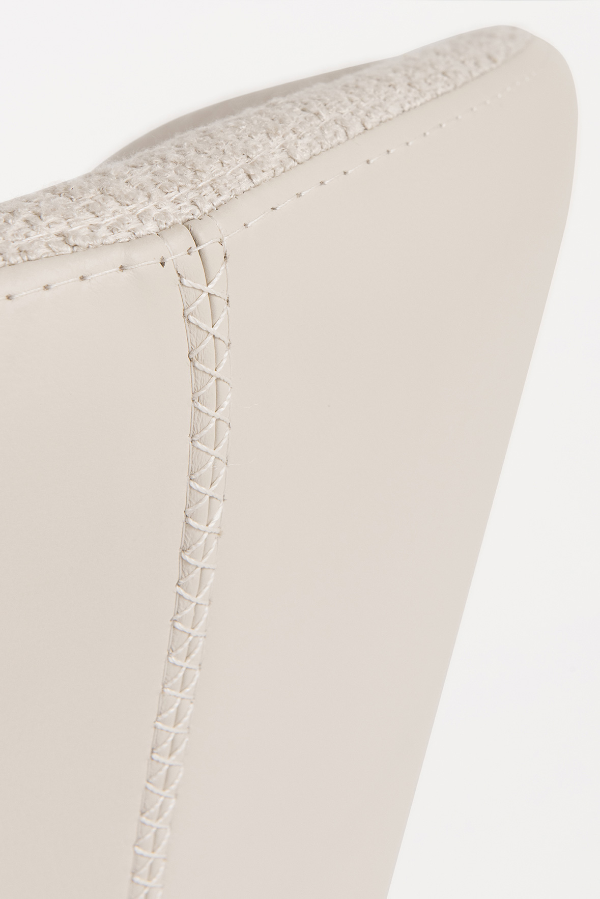 A sua forma de concha moldada e o seu estofamento delicado convidam-no a sentar-se. Além da base giratória que agrega muita funcionalidade, a costura feita manualmente no encosto torna cada peça única.