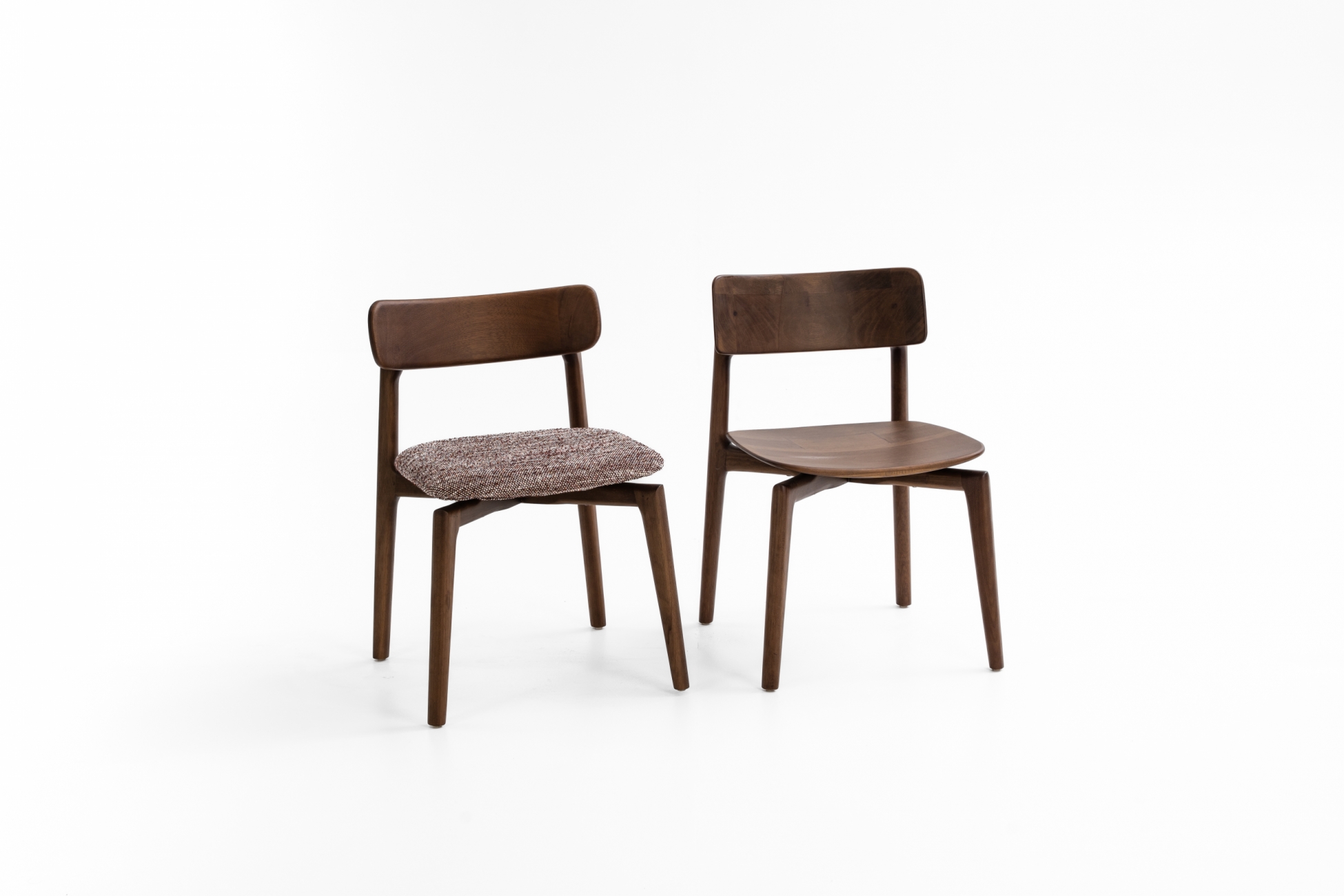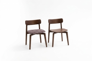 Cadeira com estrutura e encosto em madeira maciça, detalhe no encosto com acabamentos em dourado. Disponível com assento em madeira maciça ou estofado, une sofisticação e design atemporal.
