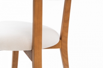 Cadeira estofada com estrutura em madeira maciça, pensada para proporcionar conforto e elegância, com um design sofisticado e alta durabilidade.