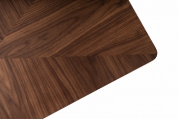 Mesa de centro laminada, com tampo em MDF marchetaria ou liso e base em aço carbono laminado ou pintado.