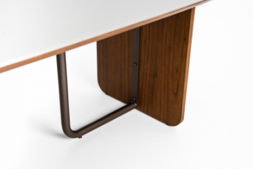 Mesa de jantar com base laminada e detalhes em metal pintado, tampo em 18?mm laminado ou vidro pintado 4?mm.