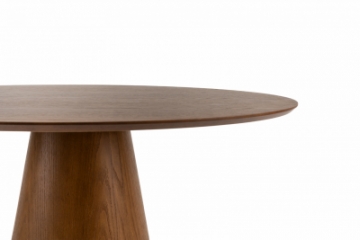 Mesa de jantar com base laminada ou laqueada e tampo redondo, em 18?mm ou vidro pintado 4?mm, projetada para oferecer elegância, resistência e sofisticação ao ambiente.