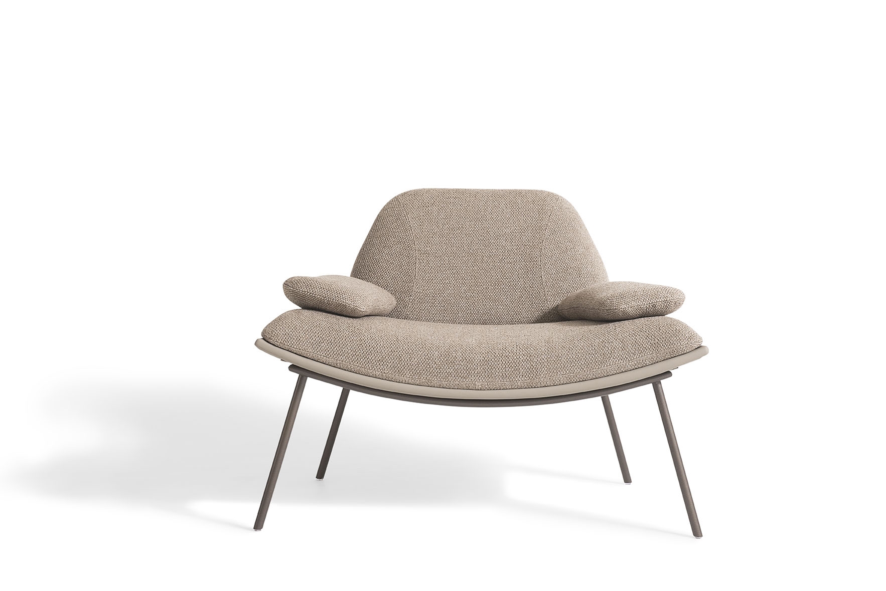 Uma poltrona que parece planar, dada a concha que sustenta a estrutura estofada, e a estrutura leve, executada em aço tubular. Inspirada nos móveis modernistas, a combinação de diferentes acabamentos na mesma peça é o ponto chave da poltrona Wide.
