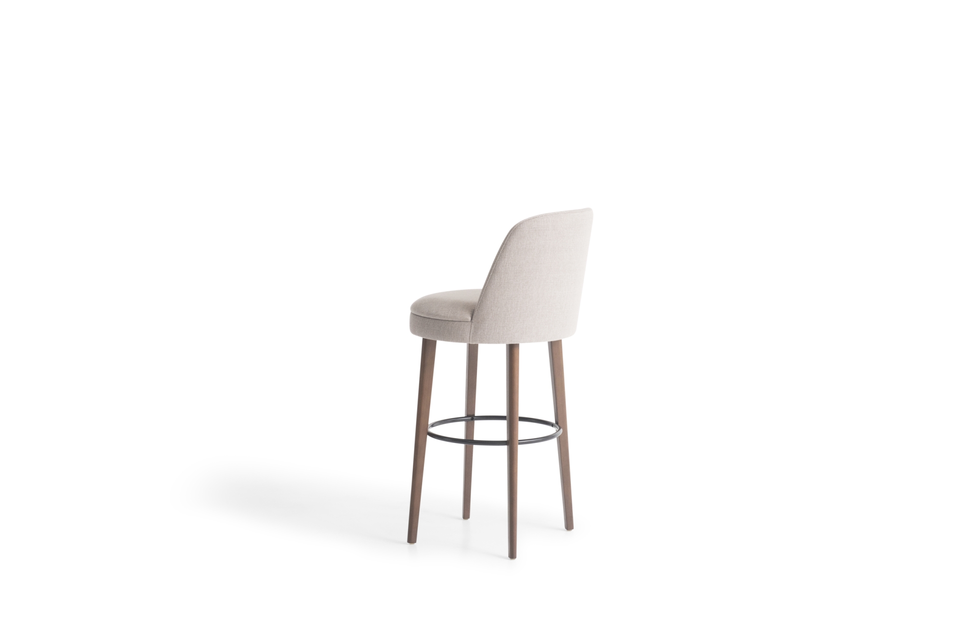 Banqueta estofada base madeira tingida , fixa ou giratória. Opção com ou sem braço.