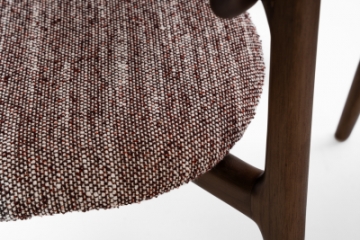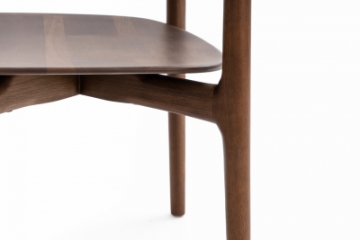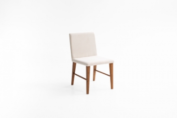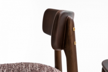 Cadeira com estrutura e encosto em madeira maciça, detalhe no encosto com acabamentos em dourado. Disponível com assento em madeira maciça ou estofado, une sofisticação e design atemporal.