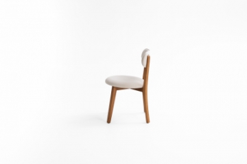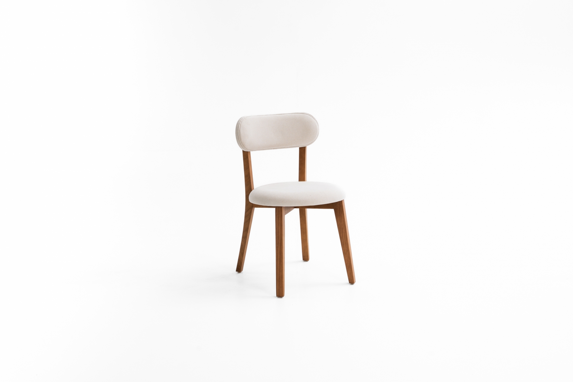 Cadeira estofada com estrutura em madeira maciça, pensada para proporcionar conforto e elegância, com um design sofisticado e alta durabilidade.