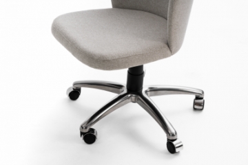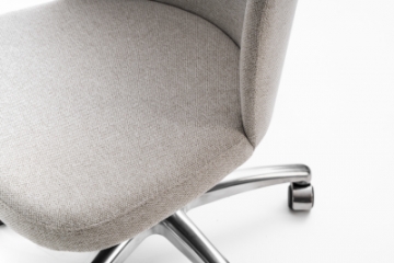 Cadeira estofada com base em alumínio pintado ou polido, com pistão e mecanismo relax, desenvolvida para máximo conforto e ergonomia.