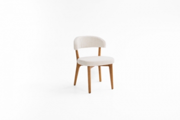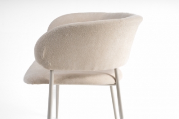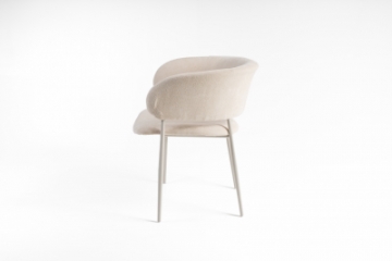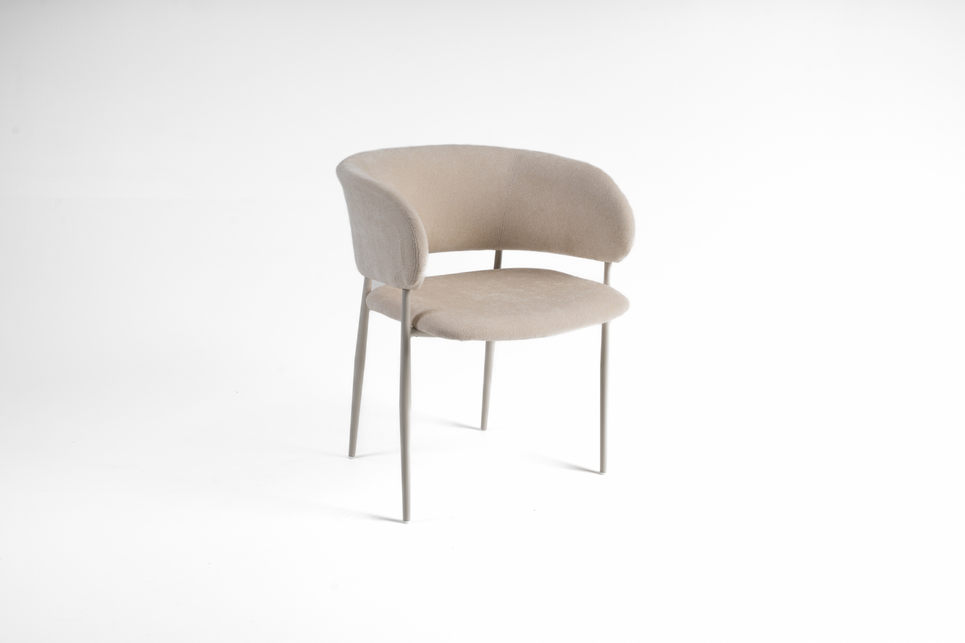 Cadeira estofada com estrutura em aço carbono conificado pintado, combinando conforto e estilo refinado.