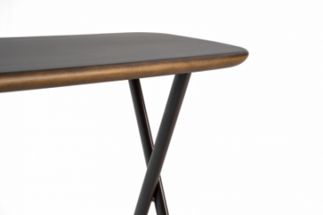 Estrutura aço inox polido, tonalizado ou pintado. Caixote superior vidro 8mm, inferior MDF laminado ou laqueado. Puxador madeira tingida ou laqueada.