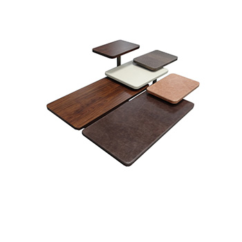 Estrutura da base chapa aço carbono pintado. Tampo MDF laminado ou laqueado.