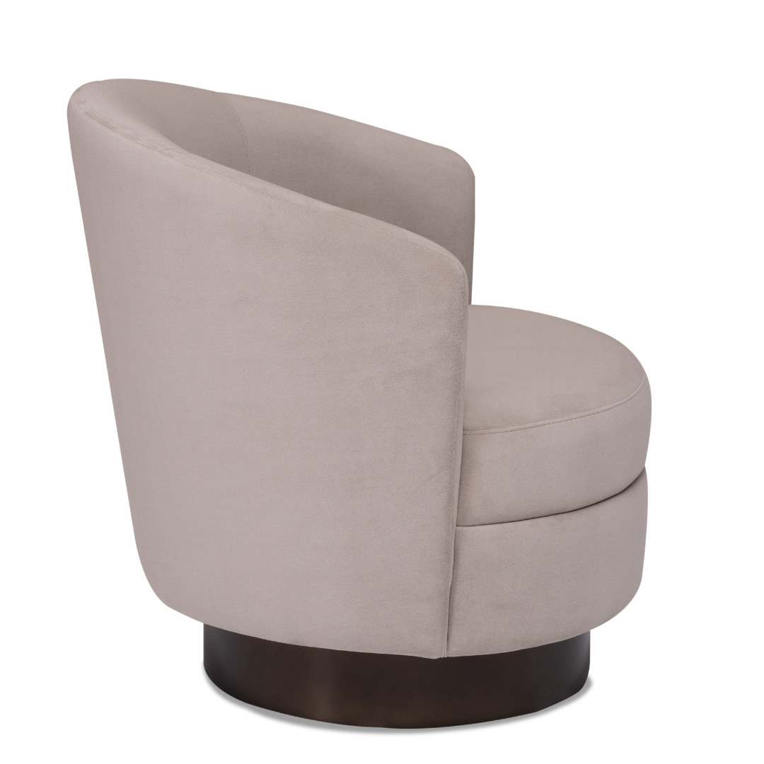 Poltrona estofada. Base giratória em MDF laminada/laca ou chapa inox polido ou tonalizado.