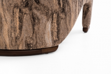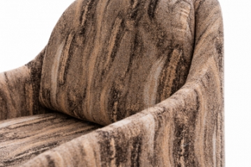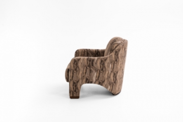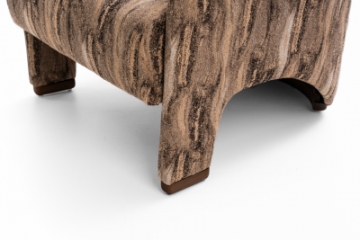 Poltrona toda estofada com assento em molas ensacadas e detalhes nos pés em madeira tingida.